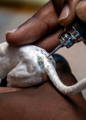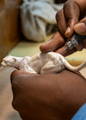 Filing is done by hand using a variety of tools to achieve precise edges and surfaces.