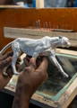 Once the metal has cooled and the form has emerged from its casting, there is a stage in the process where the piece appears complete at first glance, yet remains unresolved in its finer detail. The surface holds the memory of its making, carrying slight irregularities and traces of the mould, and it is within this quiet transition that the work begins to shift from formation to refinement.